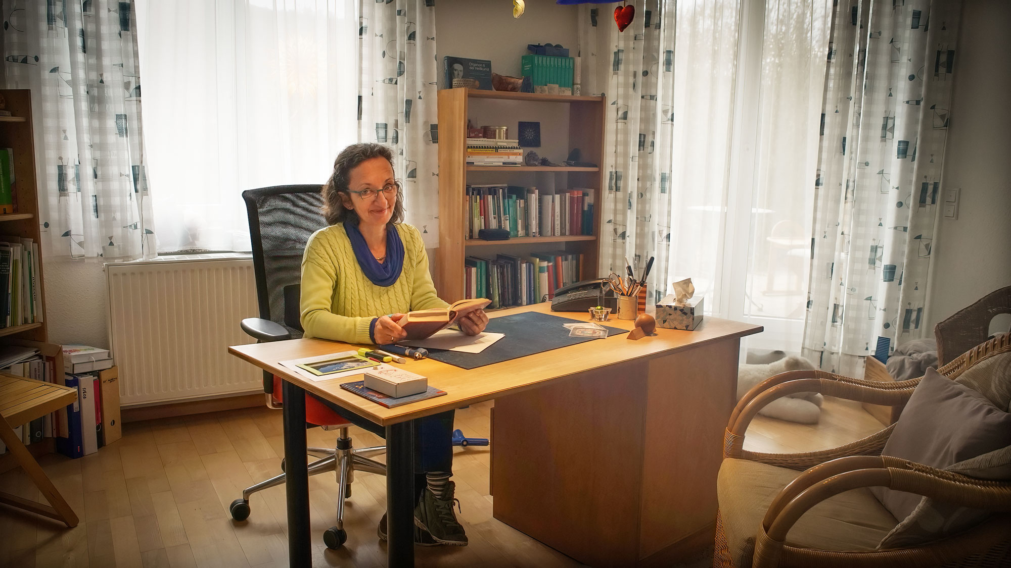 Natürlich empfing man in den Praxen auch viele pharmazeutische Vertreter. Die schulmedizinische Produkte kannte ich, die beworbenen Mittel aus dem Alternativsektor, insbesondere der Komplexmittelhomöopathie, waren für mich ein Buch mit 7 Siegeln. Das konnte ich nicht einfach auf guten Glauben hin unseren Patienten empfehlen! So begann ich nach und nach, die Einzelmittel der klassischen Homöopathie zu studieren. Einige Jahre später vertiefte ich mein Wissen anlässlich der Geburt unseres Sohnes. Wertvolle Lehrer waren unter anderem Alfons Geugkens, Henny Heudens Mast aus Belgien, Paul Herscu aus USA, Georges Vithoulkas aus Griechenland und Rajan Sankaran aus Indien. Die TCM lernte ich in der Rheinfelder Praxis kennen und erhielt die Ausbildung in einem großen Institut in Zürich. Wichtig bei meiner Arbeit ist es, den gegenüber sitzenden Menschen zu sehen, zu verstehen und zu begleiten. Es geht darum, die individuellen Selbstheilungskräfte anzuregen, ob homöopathisch, phytotherapeutisch, oder mit einer Lebensstiländerung. Dazu bedarf es der Wahrnehmung des Arztes/Therapeuten und der eigenen Reflexion. Die letzten Jahre widmete ich der psychotherapeutischen Ausbildung, die ich als eine der größten Bereicherungen erlebte.